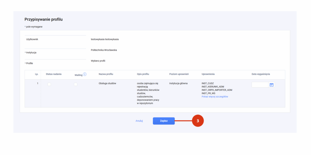 - studia prowadzone przez filię muszą zostać wprowadzone z dopiskiem nazwy filii przy nazwie kierunku np. Administracja (Filia w Zamościu)