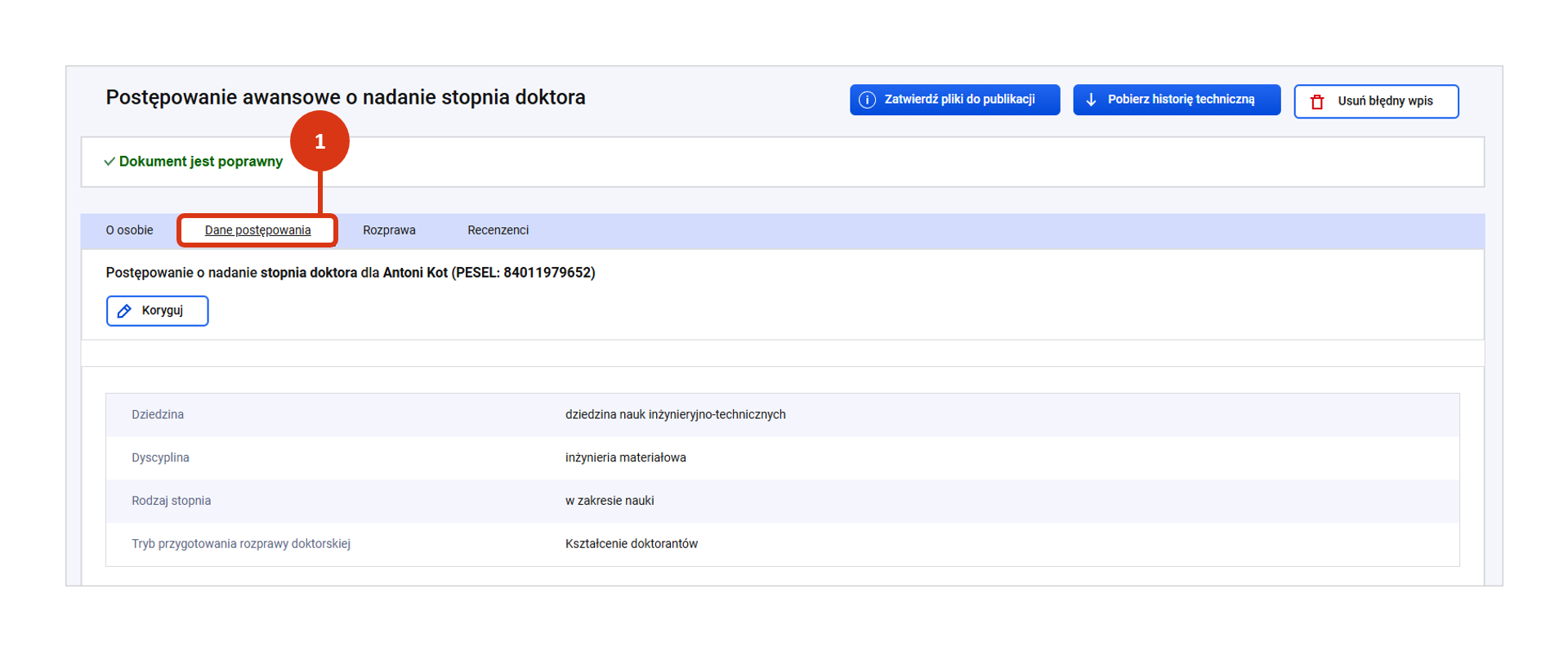 Z tego wpisu dowiesz się jakie informacje są wymagane do zarejestrowania postępowania awansowego, co oznacza stan danych postępowania i jak należy postąpić w przypadku oznaczenia danych jako błędnych przez system.