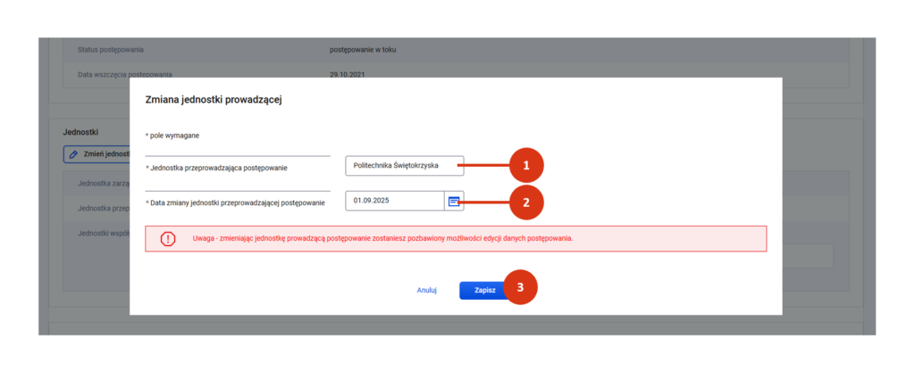 Pozostałe dane możesz wprowadzić później, pamiętając o obowiązujących cię terminach na rejestrację i aktualizację postępowania awansowego.