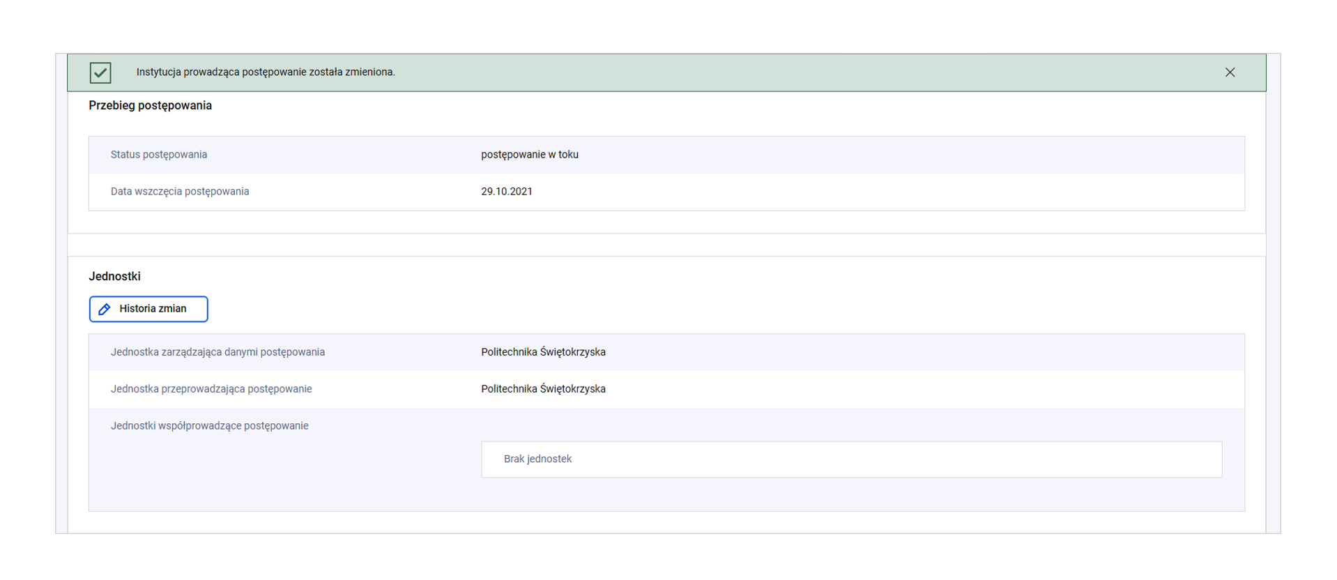 Po każdej edycji i zapisie rekordu system weryfikuje kompletność i poprawność techniczną danych. Wyjątkiem są archiwalne rekordy postępowań o statusie „zamknięte”, które już nie podlegają weryfikacji.