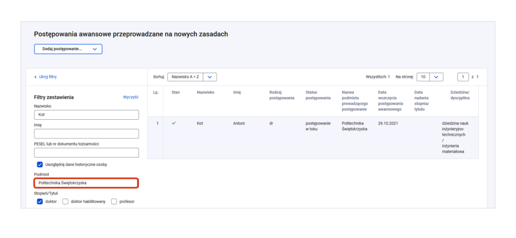 Jeśli posiadasz w POL-on rolę edycyjną INST_DR_DRHAB możesz zarejestrować postępowanie awansowe i zarządzać jego danymi.
