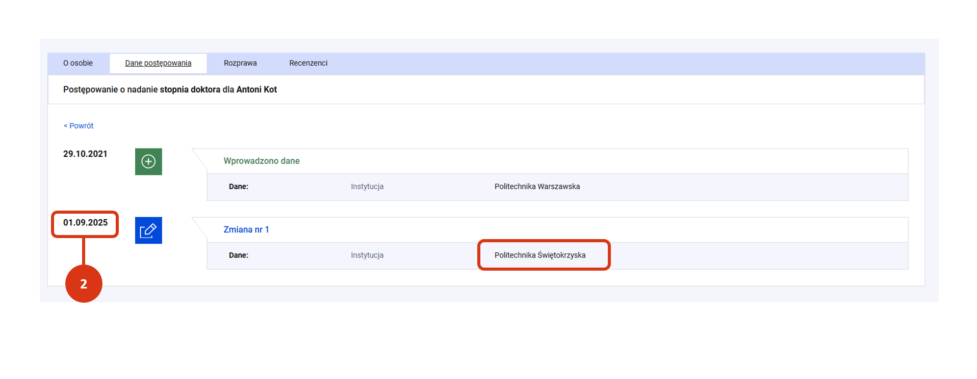 - dziedzina lub dziedzina i dyscyplina, w których osoba ubiega się o stopień/tytuł.