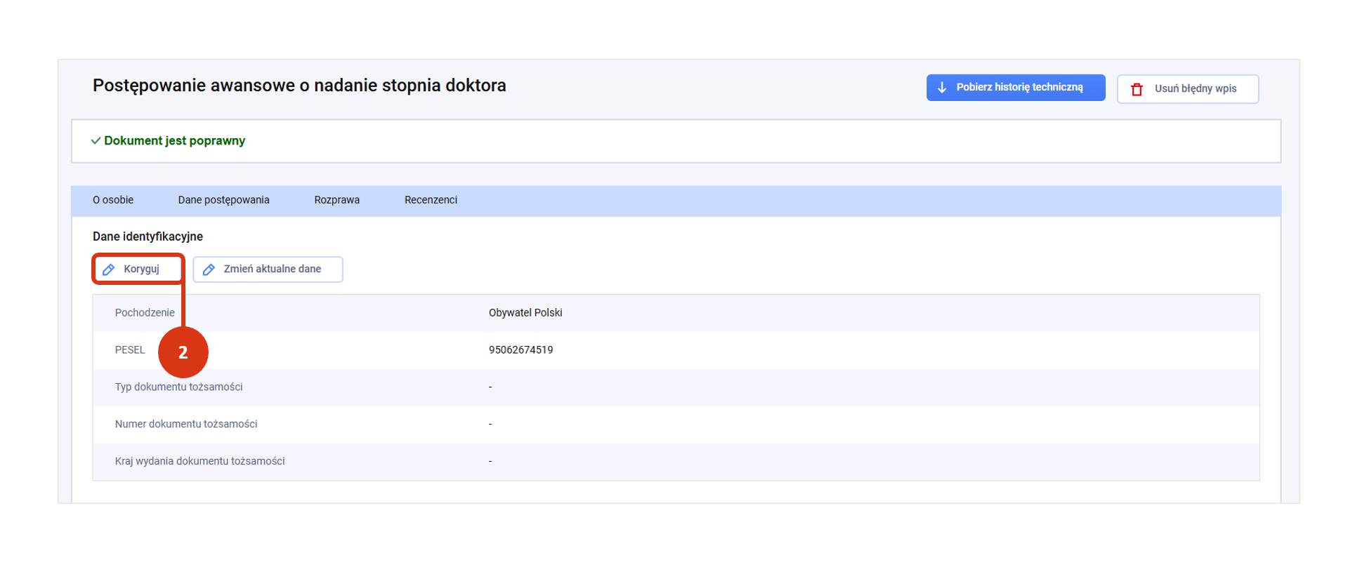 W domyślnej zakładce „O osobie” wybierz przycisk „Koryguj” [2].