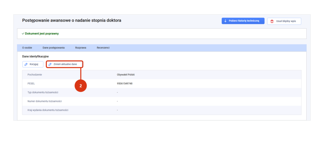 W tym artykule znajdziesz informacje o tym, jak poprawić lub zarejestrować zmianę danych osobowych w postępowaniu awansowym.