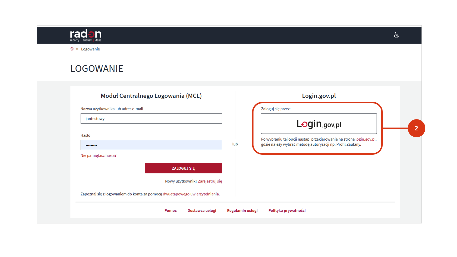 - Loginu i hasła konta Modułu Centralnego Logowania,