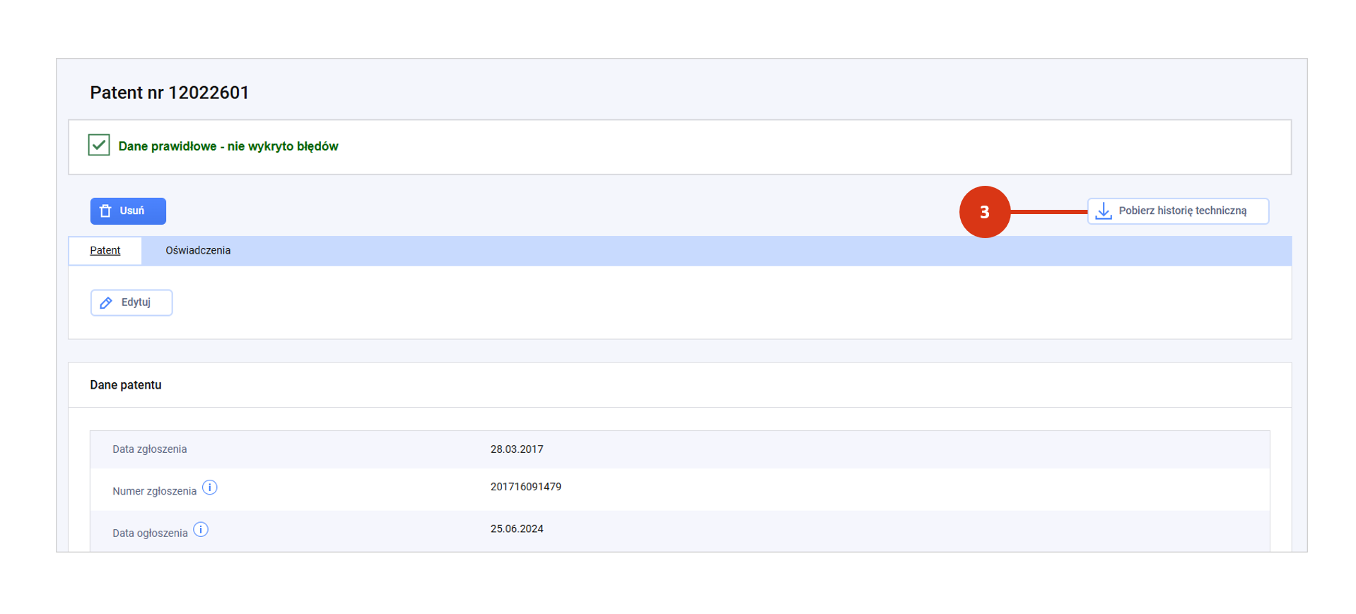 Z tego wpisu dowiesz się jak pobrać dane z historii technicznej patentu na wynalazek, prawa ochronnego na wzór użytkowylub wyłacznego prawa hodowcy do odmiany rośliny.