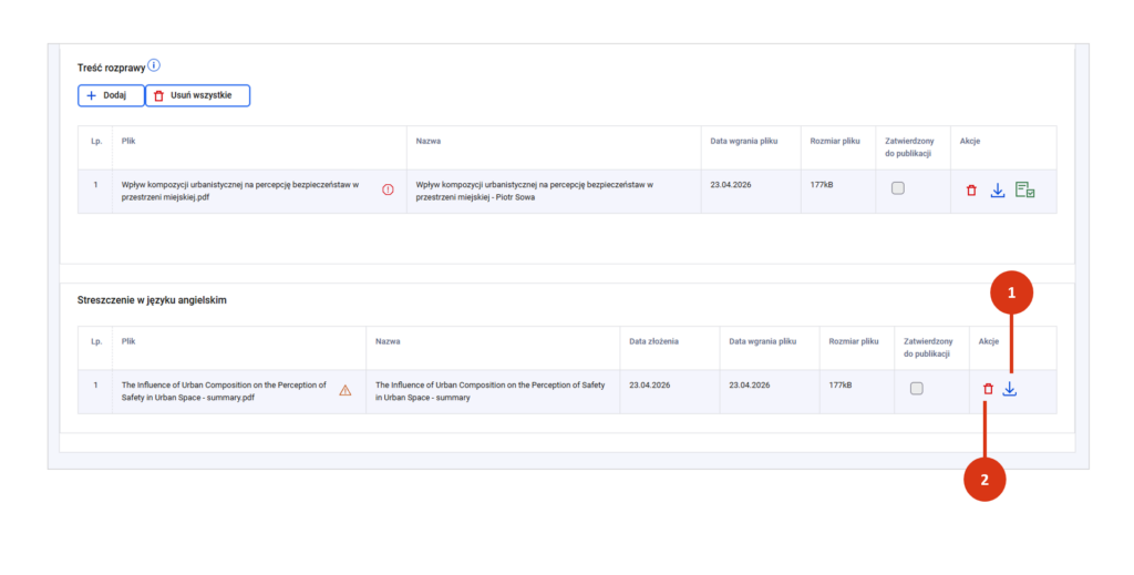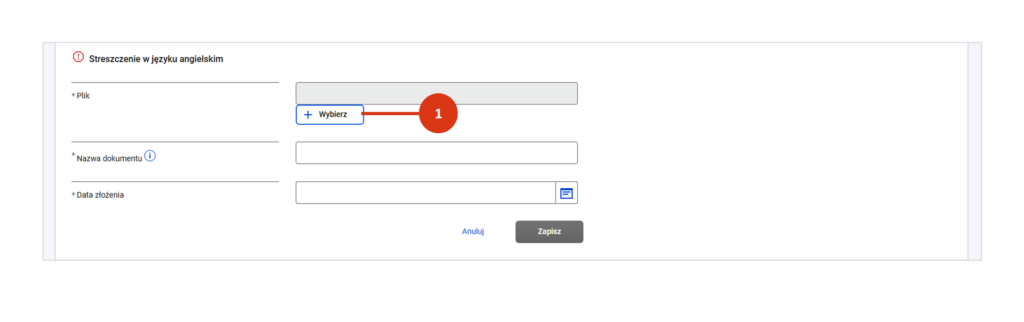 Aby dodać plik streszczenia, kliknij w „Wybierz” [1] i wskaż właściwy plik z komputera.