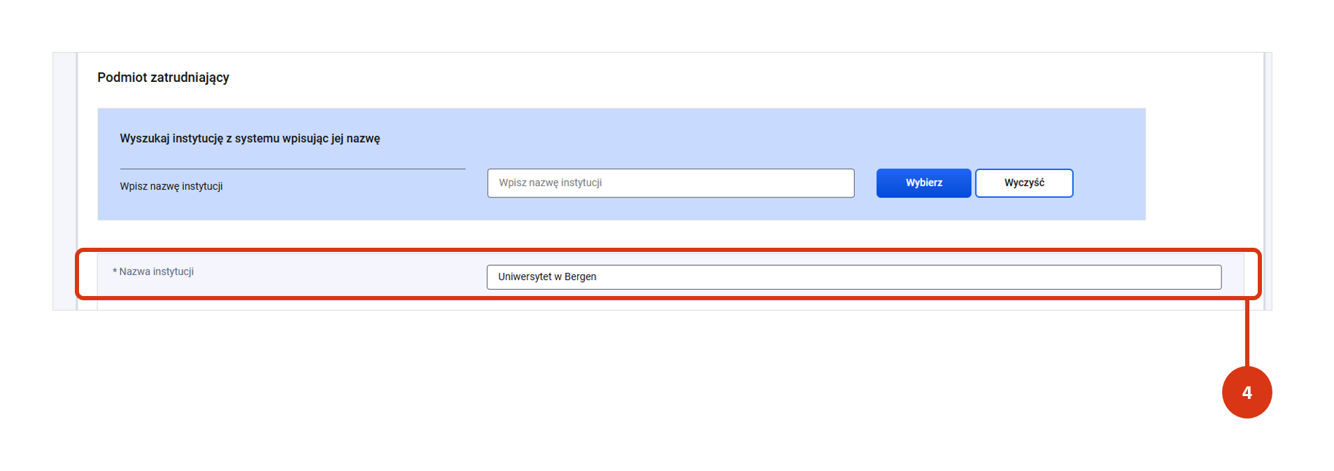- Jeśli recenzent jest zatrudniony przez podmiot niewchodzący w skład polskiego systemu szkolnictwa wyższego i nauki (np. przedsiębiorstwo lub instytucja zagraniczna), wpisz jego nazwę w pole formularza [4].