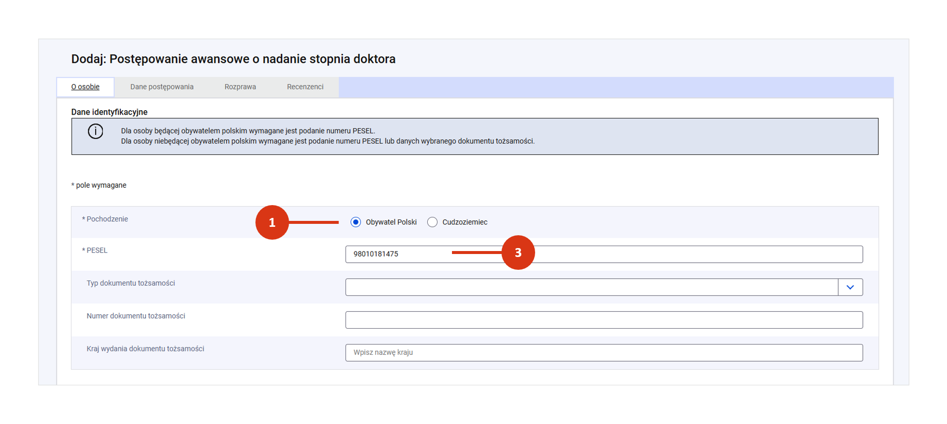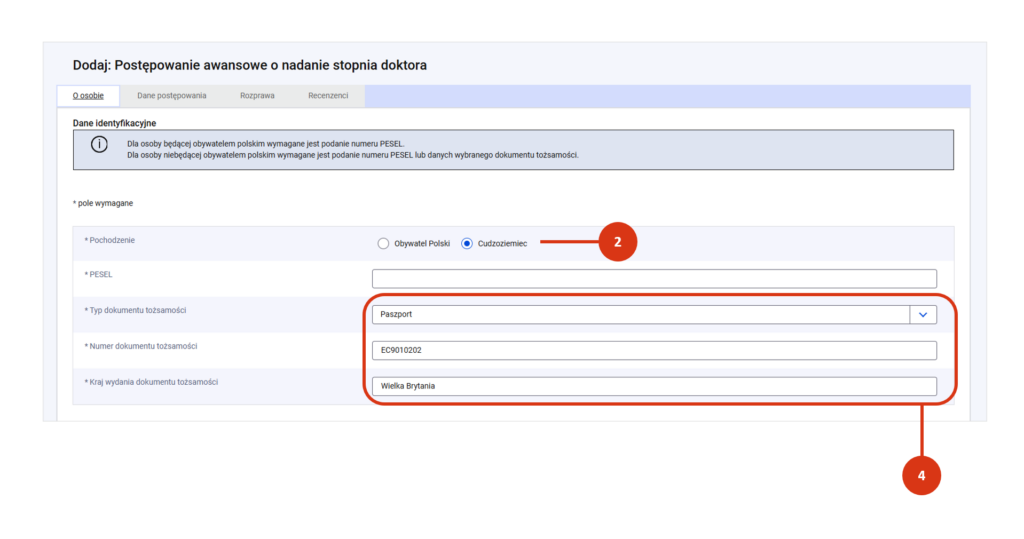 - numer PESEL – w przypadku Polaka lub cudzoziemca, który posiada PESEL [3] lub