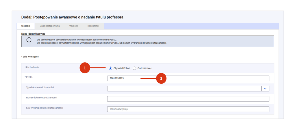 - numer PESEL – w przypadku Polaka lub cudzoziemca, który posiada PESEL [3] lub